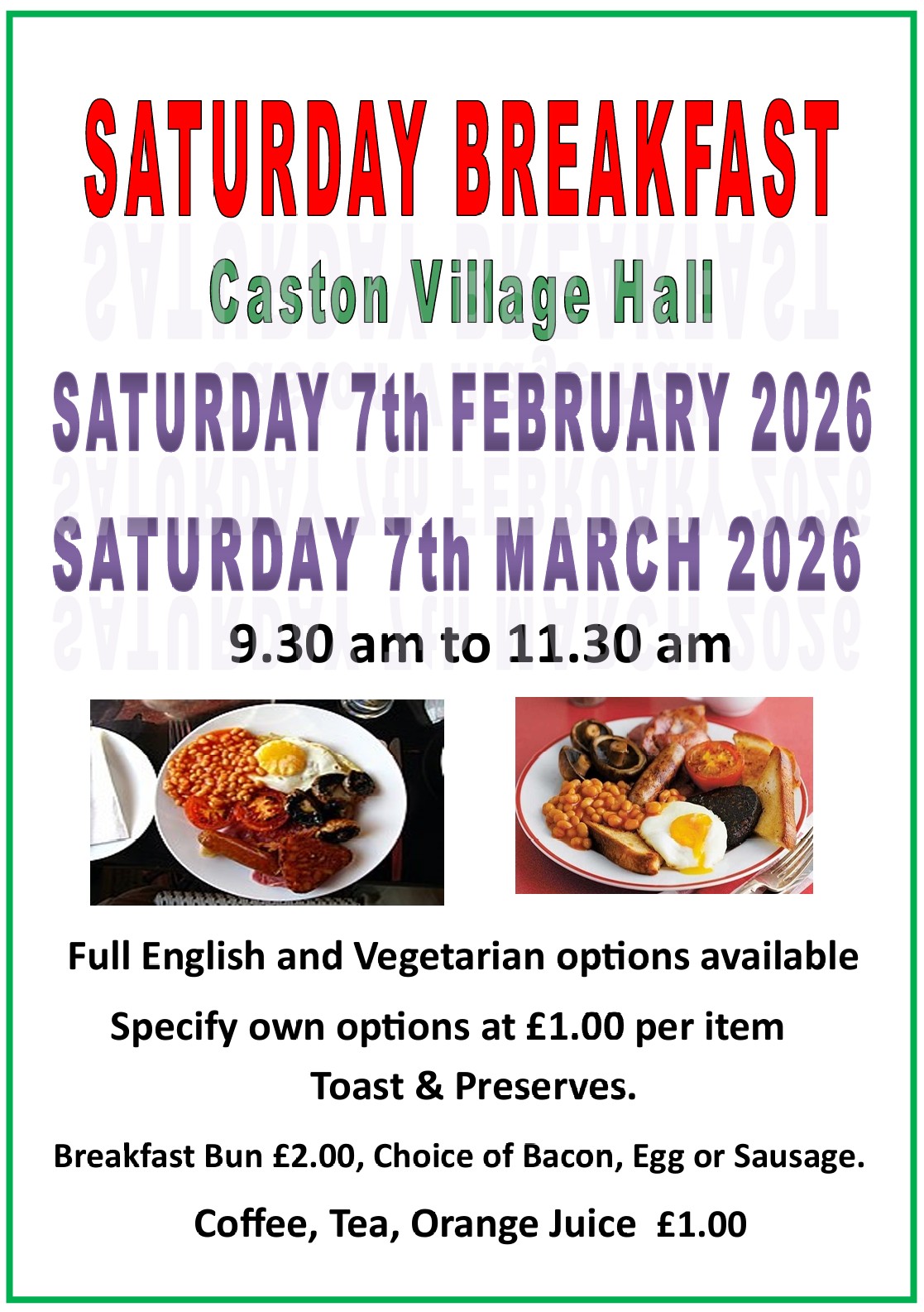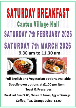 Saturday Breakfast At Caston Village Hall